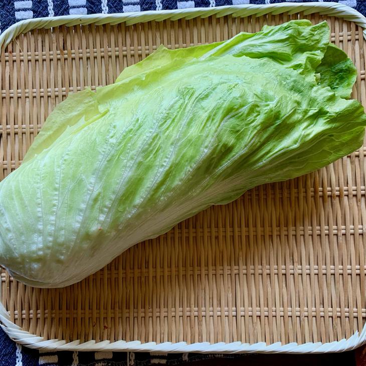 縦に半分に切る。(半分はラップして冷蔵庫)
