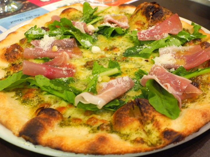 「生ハムとルッコラのジェノベーゼピザ」(\1,300)
