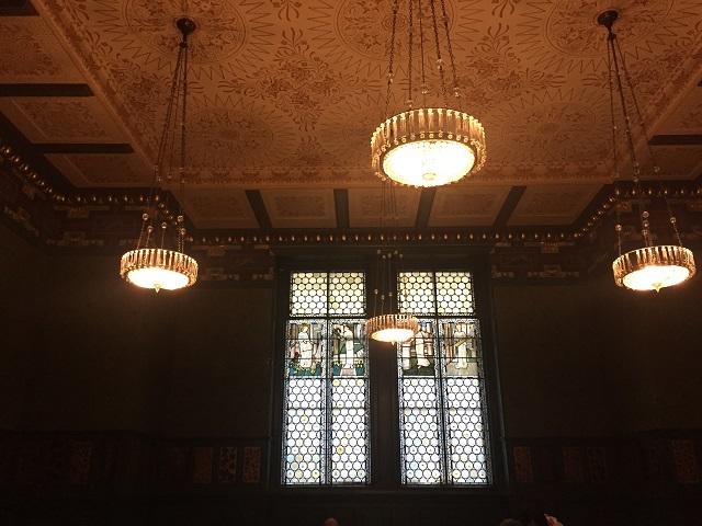 ステンドグラスや壁紙を始め、柱や天井の装飾などもモリスのデザイン。モリス・ファンにとっては夢のような空間なのに、一杯のお茶だけでも楽しめるのは、なんとも贅沢な時間ですよね♪