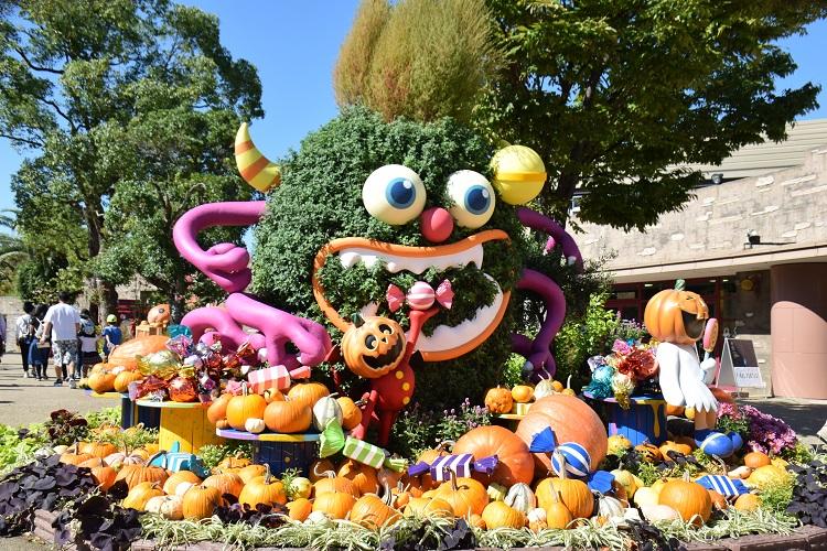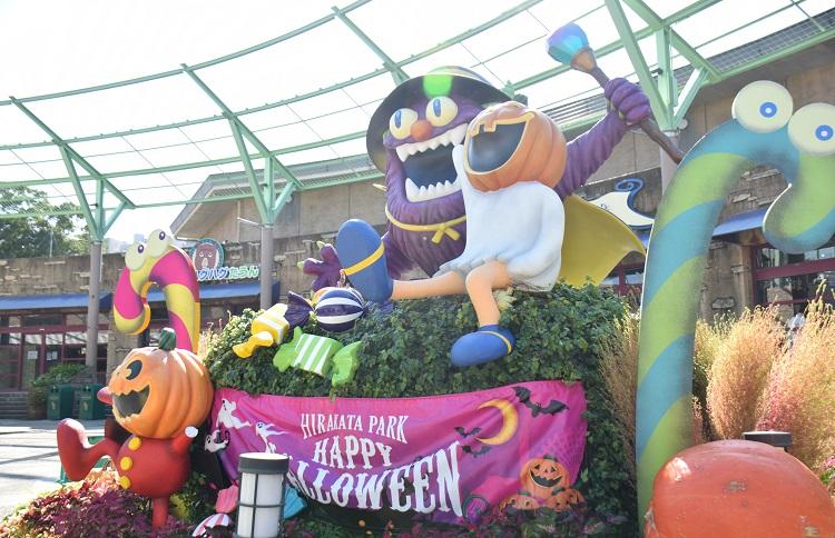 こんにちは。大阪特派員のかおりです。故意的に同じようなタイトルにしていますが、前回に引き続き今回もハロウィンを感じられる場所の紹介です。枚方市にあるひらかたパーク、通称ひらパーです。こちらでは、11/4まで「ひらパー HAPPY HALLOWEEN」と題してハロウィンイベントを開催中です。入場ゲート前からハロウィン気分が盛り上がるオブジェです。