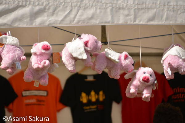 ↓こちらも動物愛護団体のブース、羽のついた豚のぬいぐるみが売られていました。
