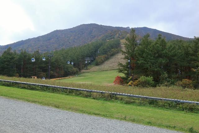 登山口へと戻り、あだたら山ロープウェイ山麓駅前から薬師岳を望みます。