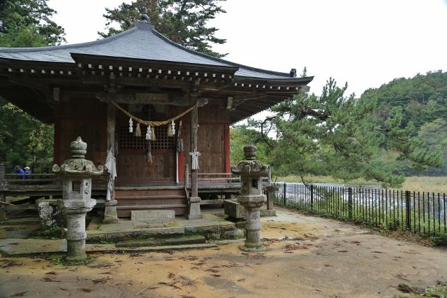 滝見不動尊堂(向かって右側が乙字ヶ滝)