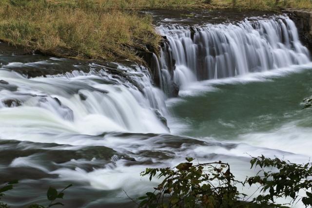 落差は約6m。幅は水量によって変化しますが、最大で約100mの川幅全体に渡ります。