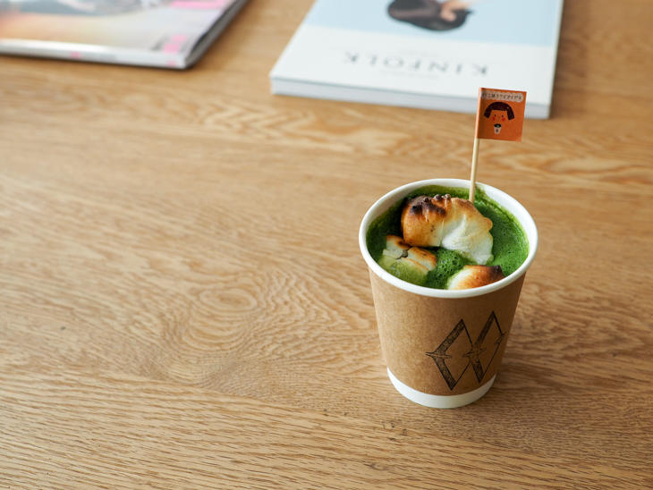 こんがり焼きあがった小さな餅が抹茶仕立てのオシルコに浮かんでいます。