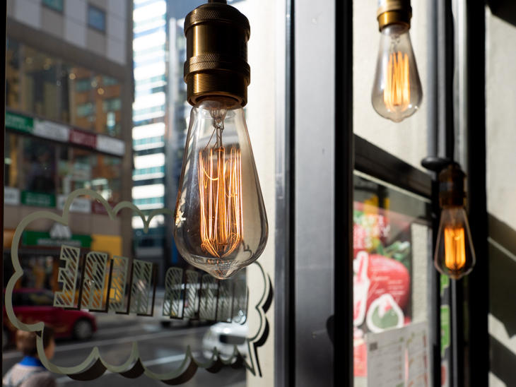 ガラス越しにクリエイティブな雰囲気がいっぱいの工房を見ながら、