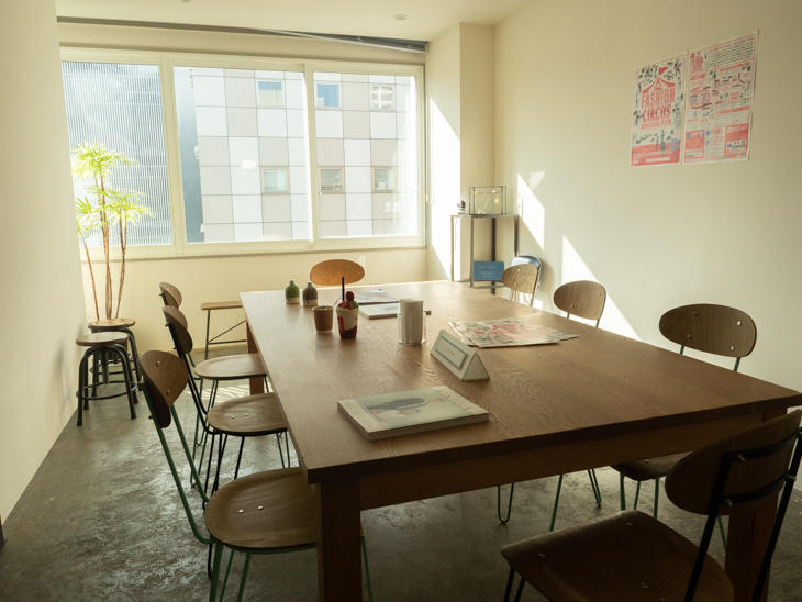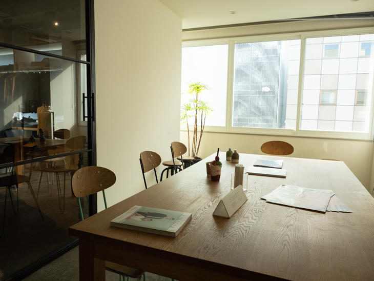 実はこのイートインスペース、中にガラス扉があり、その向こうは仕立て屋さんの工房とオフィス!