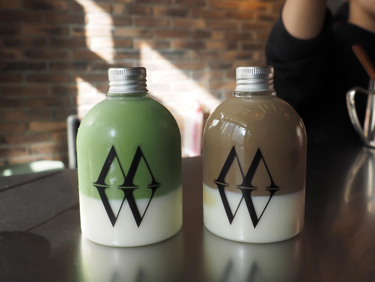 "Bottle Drinks, Maccha Green Tea Latte and Hojicha Roasted Green Tea Latte with milk jelly from Hokkaido"