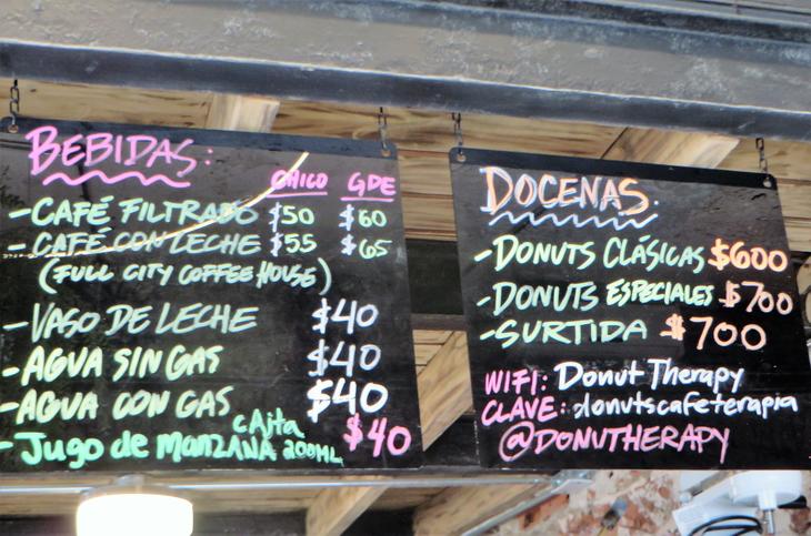 ドーナツの値段は種類によって、50ペソから(現在1ドル35ペソ程度)