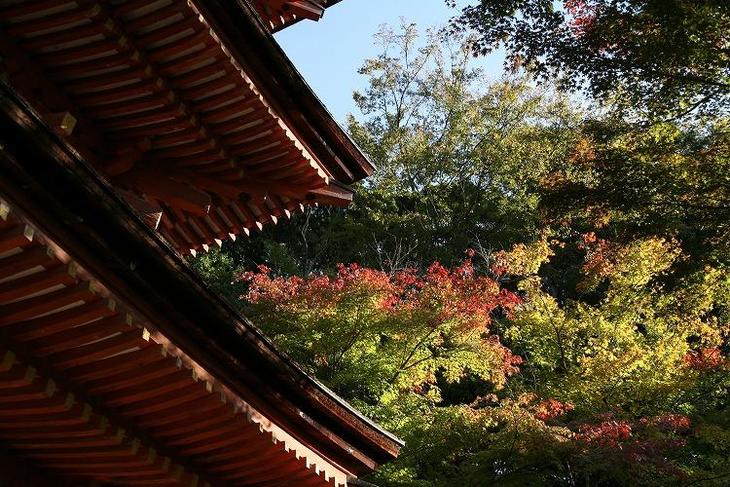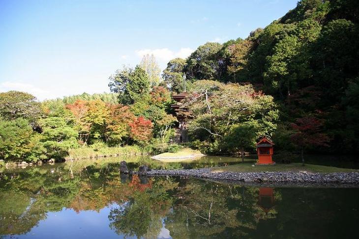 京都府木津川市加茂町の浄瑠璃寺では、ゆっくりと紅葉が始まっています。