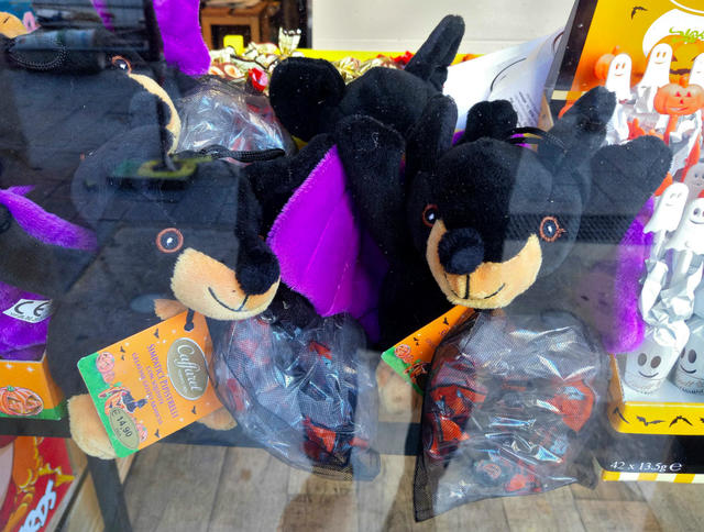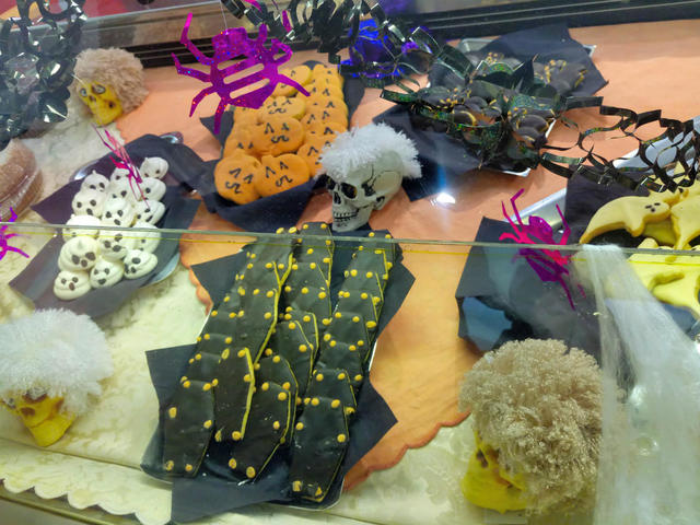 ↑ お菓子屋さんも、最近ハロウィン風のお菓子を作り始めました。若い世代はハロウィンは分かっていますが、お年寄り達は”何で骸骨がいるの!?”と言った表情でじっと見つめていました。