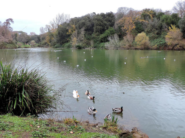 ↑ ローマ貴族パンフィーリ家の田舎の滞在用としての機能を持っていたヴィッラは、1700年代以降に用水路や池の整備などの改修が行われました。筆者が訪れた時間は、池の周りのベンチで景色を見ながらお食事を摂る人達がいました。筆者が池に近づくと、餌をくれると思ったのかカモが皆でやって来ました。