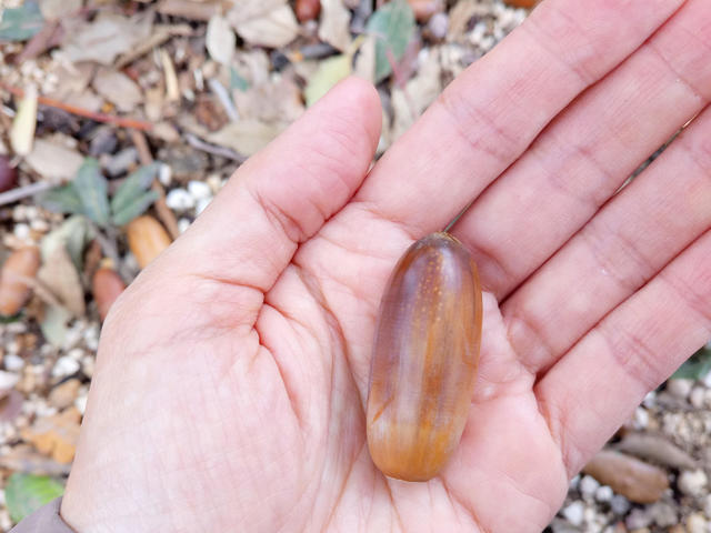 ↑ イタリアのどんぐりは、弾丸くらいの大きさがあります!掌の半分を占めていました。