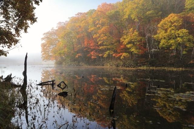 秋色に彩られた湿原の様子を。