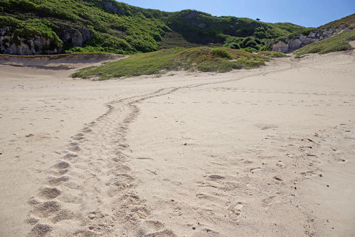 ウミガメの産卵シーズンには砂浜に足跡が残っていたり