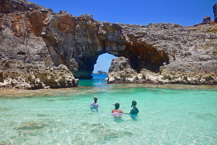②扇池から上陸する場合はスノーケリングで泳いでアーチをくぐります。