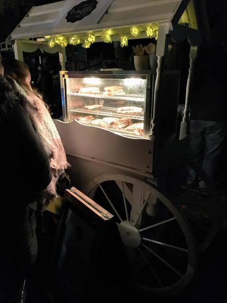 18時半開演なので19時頃に到着すると、秋冬の風物ドリンク mulled ワイン(ホットワインの事)等のドリンクコーナー、ホットドッグ、ハンバーガーの軽食コーナーといった屋台が、その小学校のPTAの取り仕切りで(恐らく)運営されていました。飲食できるものがその他二つだけ、と乏しいのでどこも長蛇の列となり、花火が打ち上げられる19時半まではひたすら並んでいました。