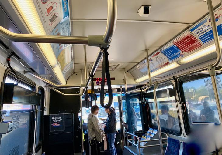 運転席側から運賃を払う、クリッパーカード利用も可能。 そしてその時、バス路線地図のパンフレットがドアの脇にあるので14番をもらっておくことを忘れずに。 本数が少ないので時間の確認はしておきたい。