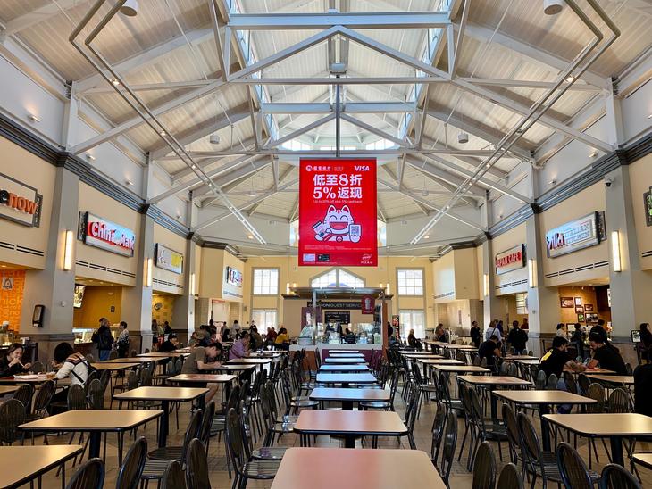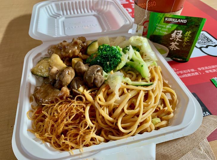 フードコートも静か大体どこでも "メキシカン・ピザ・中華" はある。 モールの主たる買い物客の好みを反映させててお国料理を用意してるか。 "ジャパンカフェ" という日本食ブースもあるけど、フードコートの垂れ幕からしてチャイニーズが売れ筋、料理も出来たてがあるのでイチオシだ。 お茶も含めて12ドルくらいティーバッグが、コストコ(Costco)のカークランド(Kirkland)ブランドを使ってるのがあからさまに分かる(苦笑) 出来ればランチはお昼前に済ませるべし!でないと日によっては中国人モーレツ買い物客がショッピングバックを山のように抱え場所取り合戦が始まりあっという間に満席。