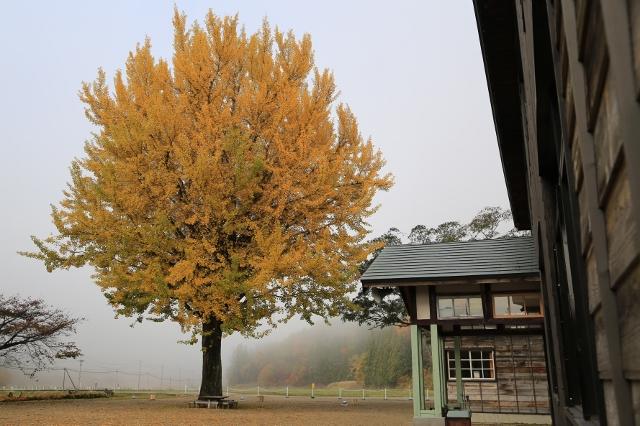 大銀杏の樹齢は約120年。一部に青葉が残るものの概ね黄色に色付いています。