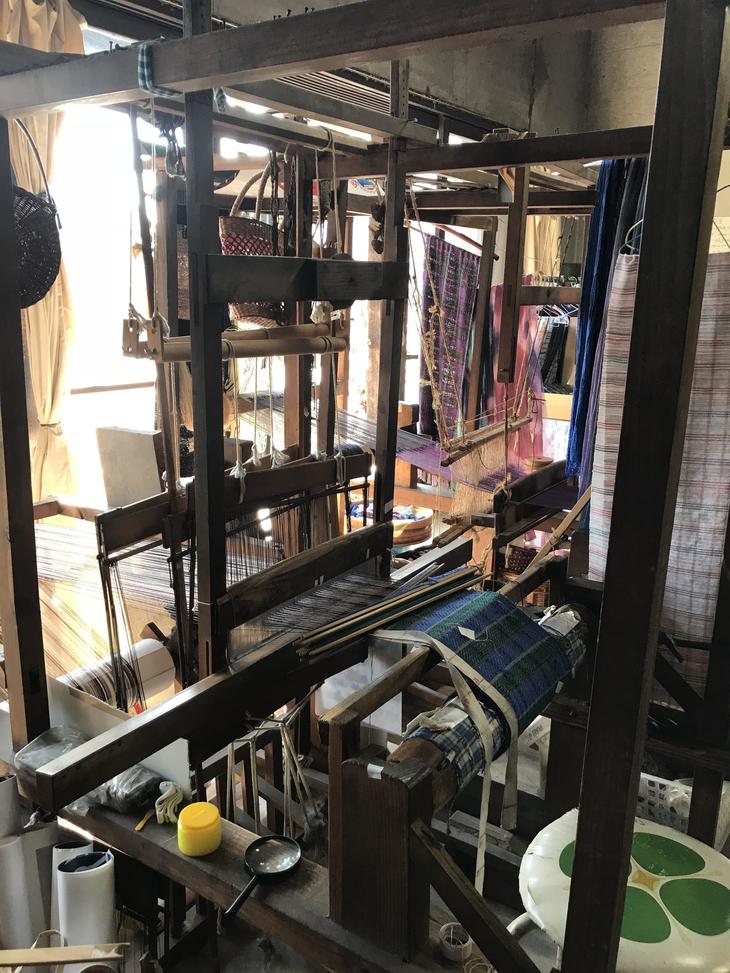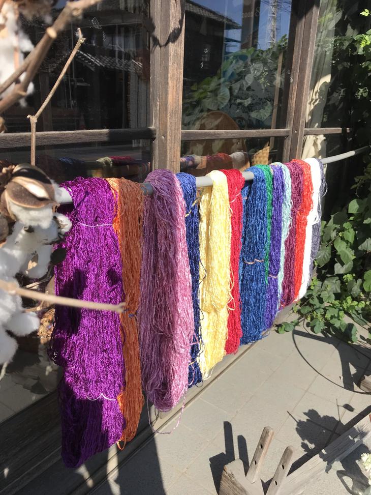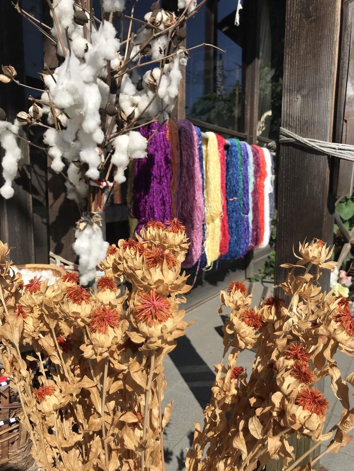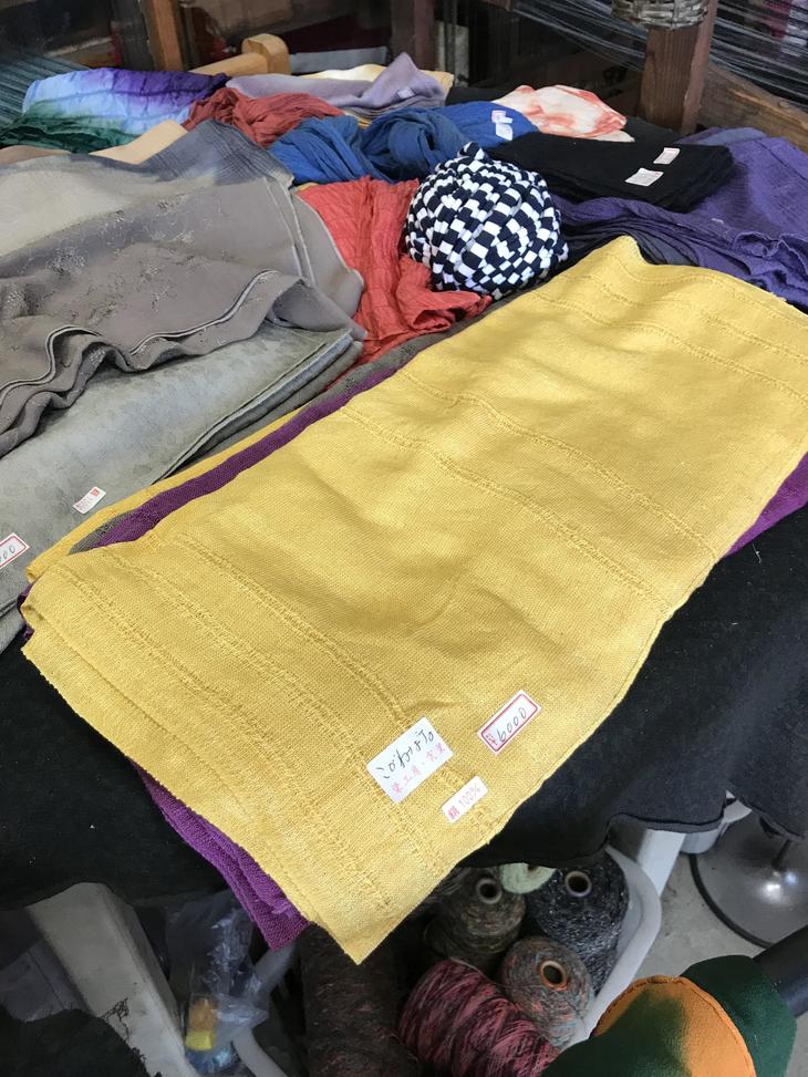 染色一筋の田島さんは草木でどう色を出すか熟知し、色にまつわる物語を研究してきた。今回は高価で高貴な紫を染める紫根や、赤色をとる茜(あかね)は国産が入手できず、中国産で代用して色を再現。細くて光沢のある県産オリジナル糸ぐんま200は、県繊維工業試験場の協力を得た。1カセを染めて半々にし、立体屏風を二つ作製。一つは試験場に提供した。