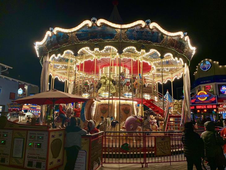 ピア39の隠れアイコンがこのメリーゴーランドだ。 このピア39は1978年10月に桟橋(ピア)を改造してできたショッピングモールで年間100万人以上の観光客が世界中からやってくるアメリカ国内屈指の観光地。 お土産物屋さんもいっぱい。