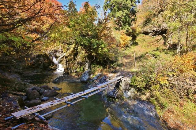 男滝&女滝の手前で、右岸側にある枯沢の奥にある展望スペースへと向かいます。