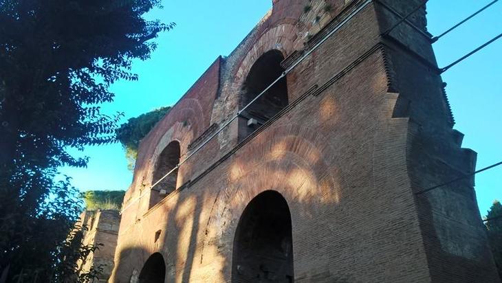 パラティーノの丘の東側には、皇帝の宮殿等で使用された水を大量に運んだとされるクラウディア水道橋(伊語:Acquedotto Claudio)の一部が残されています。古代ローマ時代当時からこのように完璧さを追求すべくインフラが整備されていたことを強く感じさせてくれます。