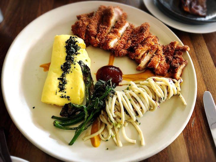 こちらのお店の特徴は、どちらかというと家庭料理で無骨な印象が強かったハワイ料理を、モダンテイストに改良しておしゃれに演出したコンセプトと、直接農家と契約を結び、厳選された新鮮食材を調達していること。フレンチトーストにはハワイ島最南にあるパン屋さんのタロイモパンを使うなど、こだわりが光ります。