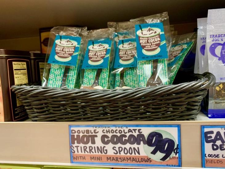 「季節限定版だよ」 て言ってたスプーンにマシュマロとココアが付いて8oz(250ml)のスチームホットミルク(又はホットミルク)をカップに注ぎ、そのスプーごとかき混ぜて飲む。 洒落た横着ホットドリンク(これ今サンフランシスコにない)99セント。 寒いシカゴにもピタッとハマる、数本購入した。