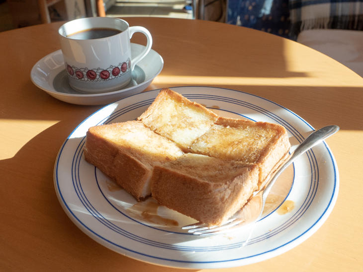 トーストメニューは、コーヒーと一緒の場合、100円引きになります。