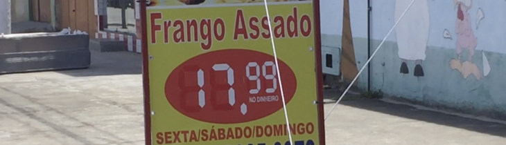お店で出来上がった鶏肉を買い、必要であればご飯やじゃがいもも一緒に購入できます。鶏肉だけであれば20レアル前後、600円程度。