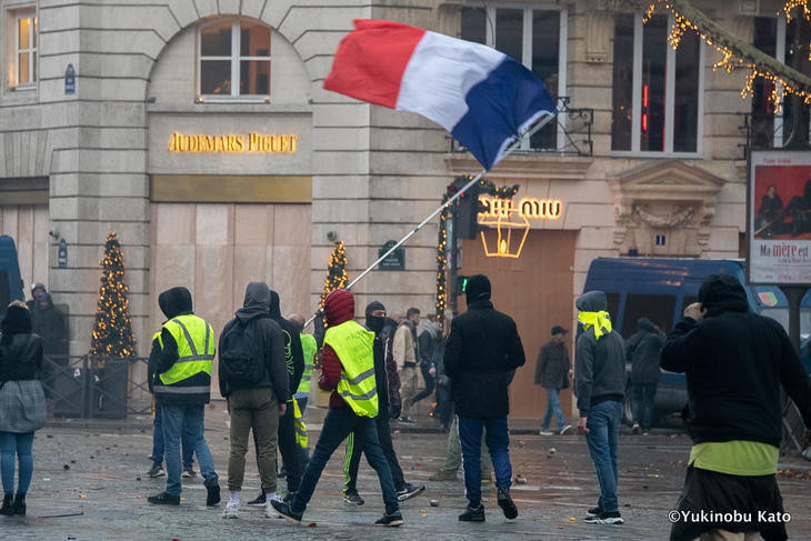 11月24日は約8000人がパリでデモのに参加。シャンゼリゼ通りには約5000人が集結しました。参加者の一部が治安部隊と衝突して、通りにある店舗を壊す、工事用の柵などでバリゲードを作る、敷石を投石する、火災が起きる、などの騒動に。そこで今回は、この「黄色いベスト」デモとシャンゼリゼ通りのイルミネーションについて、説明と注意をお知らせします。