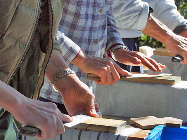 ん? 先月、「刀匠の技「古式鍛錬」の見学」でご紹介した川島刀匠の包丁砥ぎ教室がありました。