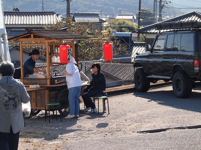吉井川の土手の上に上がると穴子の蒲焼やおでんの屋台が。
