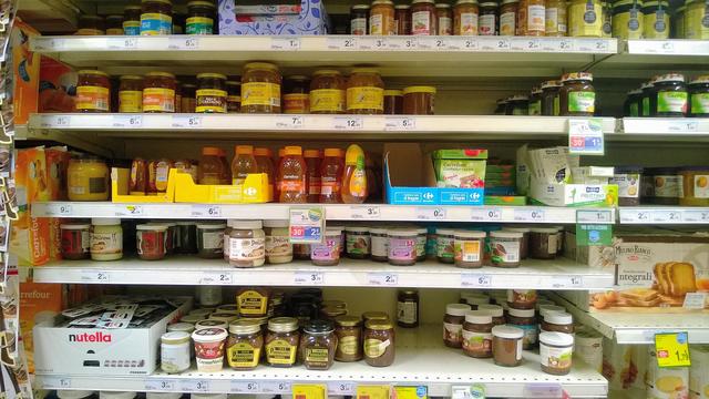 ↑ スーパーマーケットで販売されているヌテッラです。この写真を撮影した2014年はサッカーのワールドカップが行われていました。ヌテッラが入っている瓶もイタリアの国旗のデザインになりイタリアを応援しています!