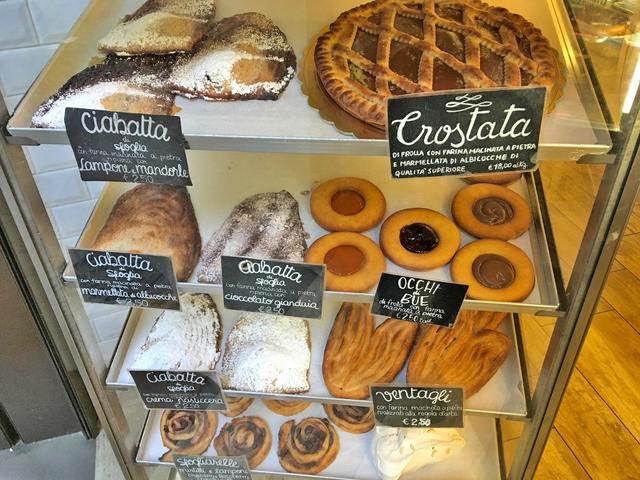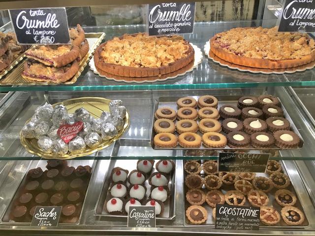 ↑ こちらのお菓子屋さんにもオッキオ・ディ・ブエがあります。ヌテッラが目玉に使用されていますね!