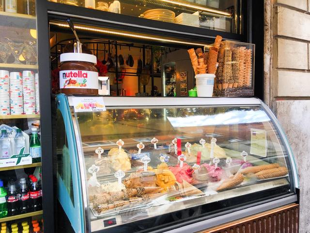 ↑ ジェラート屋さんです。こちらのお店では、盛り付けをした後のジェラートにトッピングとしてヌテッラをかけてくれます。