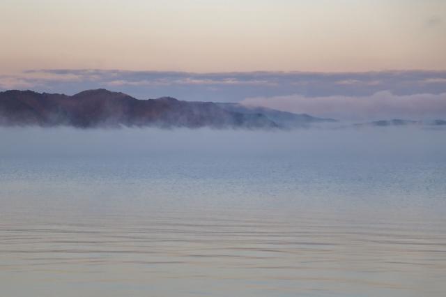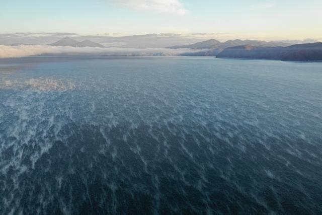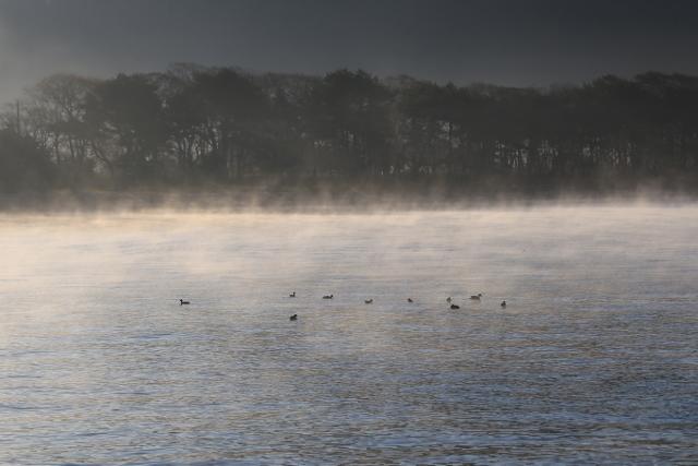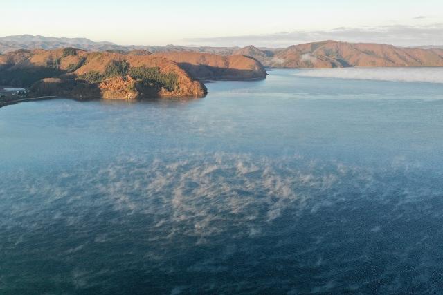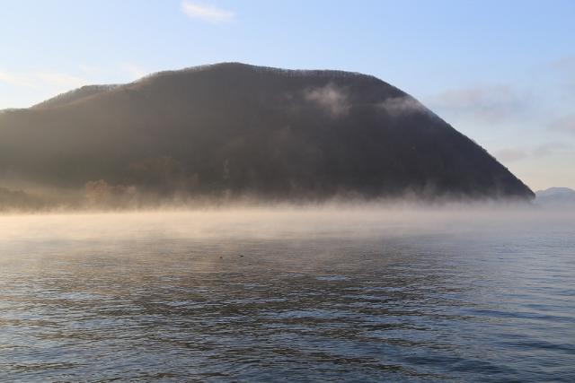 気嵐は、大気と湖水の温度差により発生する蒸気霧の一種で、秋から冬の放射冷却によって冷え込んだ朝に発生し易いとされる自然現象です。