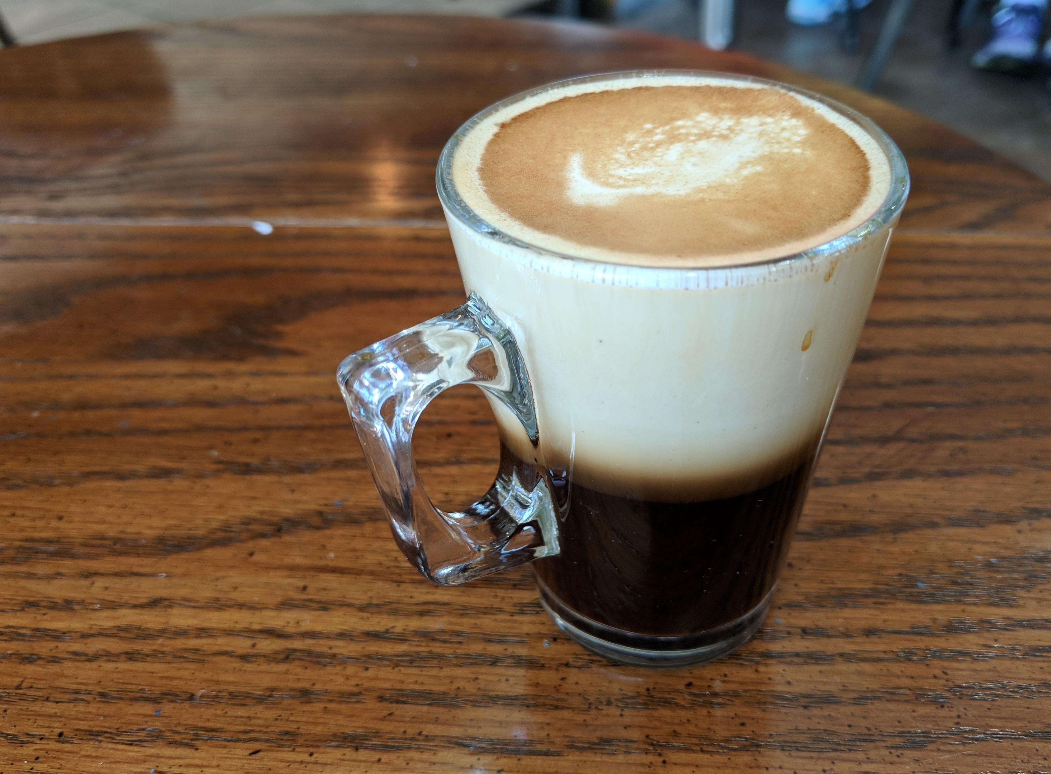 アルマデン店の定番・一番のオススメのコーヒー(Signature Coffee)のThe Cubano(キュバノ)です。キュバノはエスプレッソを生クリームで割ったもので、エスプレッソの苦味と生クリームの コクが絶妙に絡み合うコーヒードリンクです。ぜひ、お試しを。
