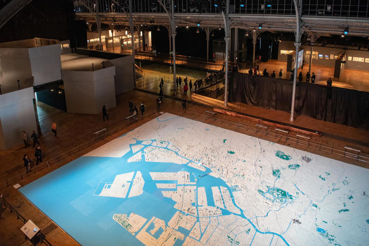 同展に入ると、まず東京の大きなジオラマが出迎えてくれます。東京というという都市は、さまざまな創作の中で多様な形で舞台になりました。時には怪獣によって大規模に壊され、時には市井の何気ない一コマや恋愛の舞台になりました。