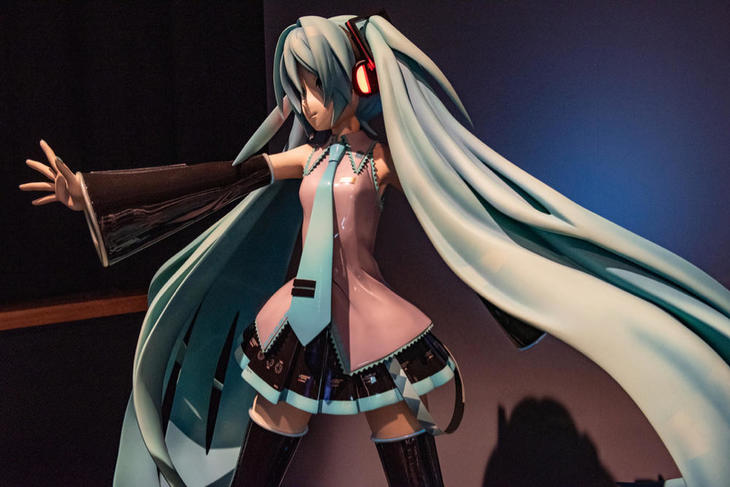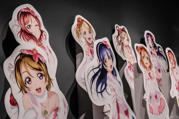 最後の「キャラクターvs.都市」のテーマでは、現実の都市空間に存在するキャラクターに焦点を当てています。商品やサービスの販売促進、企業・公共機関・自治体のマスコットなどを紹介。そして一部地域と関連付けられることにより、観光資源になっているケースも解説しています。コーワの「ケロちゃん」、佐藤製薬の「サトちゃん」から始まり、ボーカル音源のキャラクター「初音ミク」、メディア上のアイドル『ラブライブ!』などがあります。