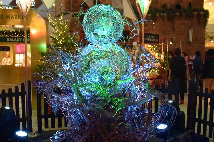 ミラーボールイルミネーションの下には、スノーマン。