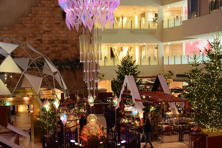 クリスマスグッズだけではなく、ドリンクやスイーツの販売もありますので、広い階段に腰かけて楽しめます。