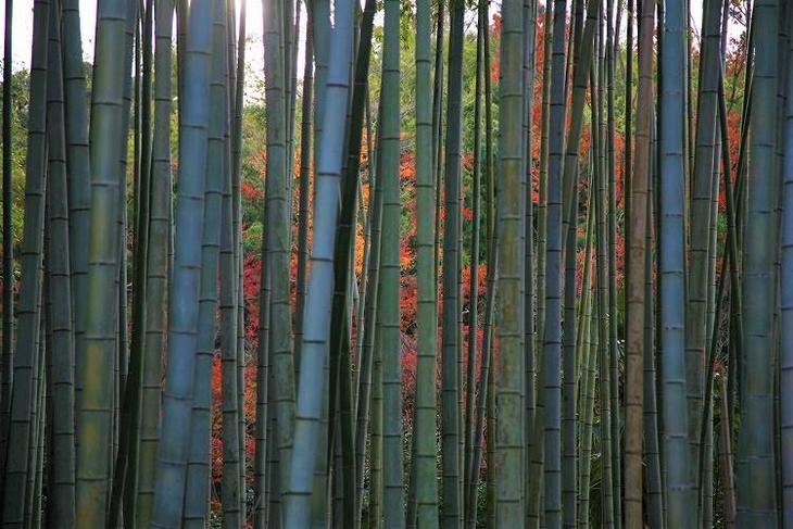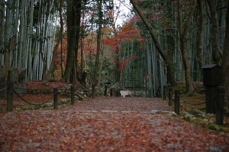 竹林の中に、ハラハラと舞い落ちるもみじ。