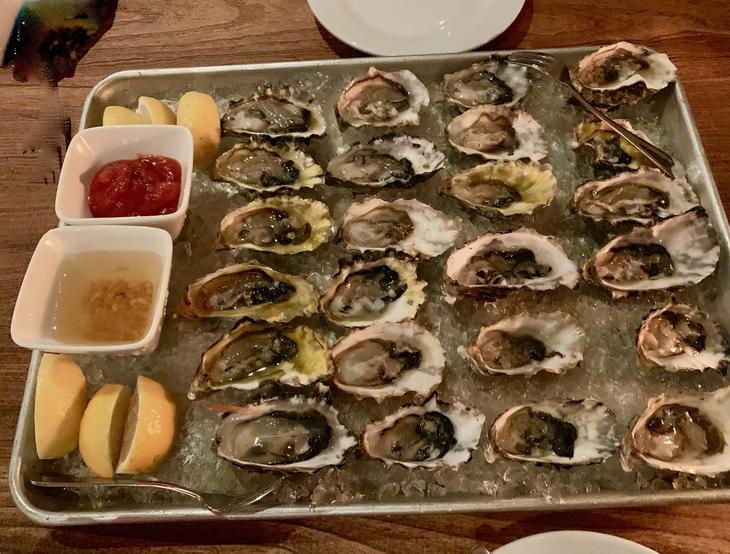 オーダーが入ってから一個ずつ剥いてるんで時間かかるっす、待ってました "ハッピーアワー1ドルオイスター" ミニョネットソースは胡瓜風味… なんか洒落たソースに聞こえるけどみじん切りのエシャレット、叩き潰したコショウ、ワインビネガー この3つ入っていたら"ミニョネット(mignonette)" 基本的な生牡蠣のソース。 これを知ればホームメイドミニョネットできるよん。 ポイントはコショウを挽くんじゃなくで叩き潰す。