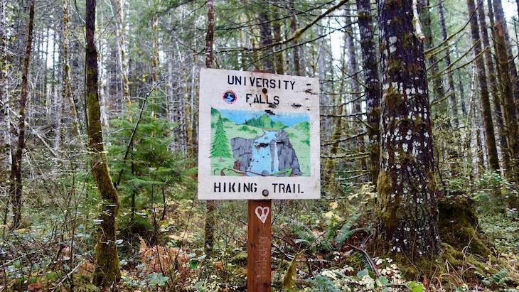 ユニバーシティー・フォールズへのトレイルヘッドは、国道6号線からサインに沿って森林内を入ったところにあります。