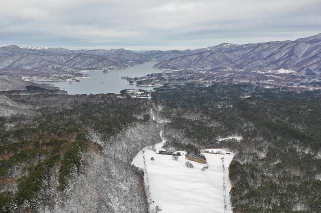 ゲレンデトップから桧原湖方向を望みます。