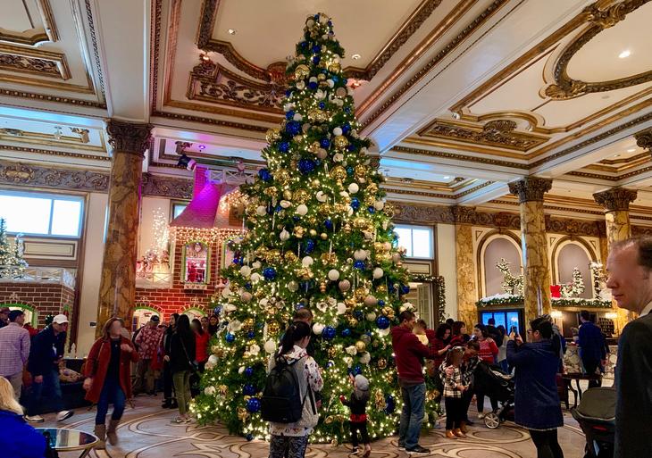 ジンジャーブレッドハウスは相変わらずの人気スポットで写しても人の方がいっぱい写っちゃうんだ。 "押すな押すなの大盛況" お祖父ちゃんの代から見にやってきてる家族づれもいて、サンフランシスコのアイコンの一つ老舗ホテルはこの時期最も華やかになる。