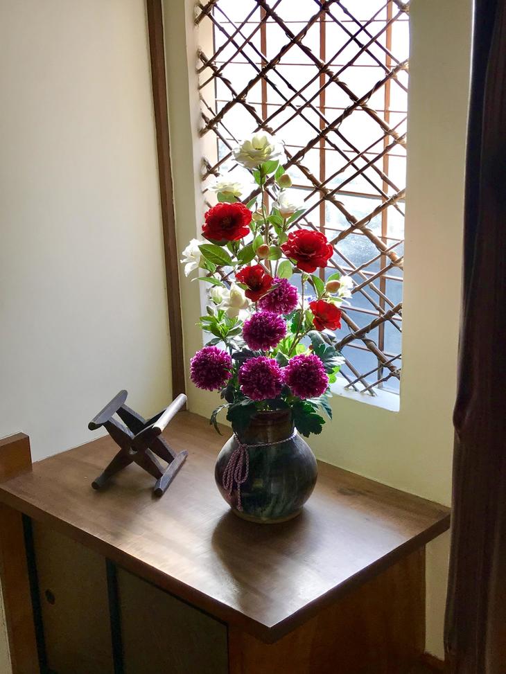 客席の床間だった所には、掛け軸ではなく大きなステンドグラスが掛かってるぅ〜!